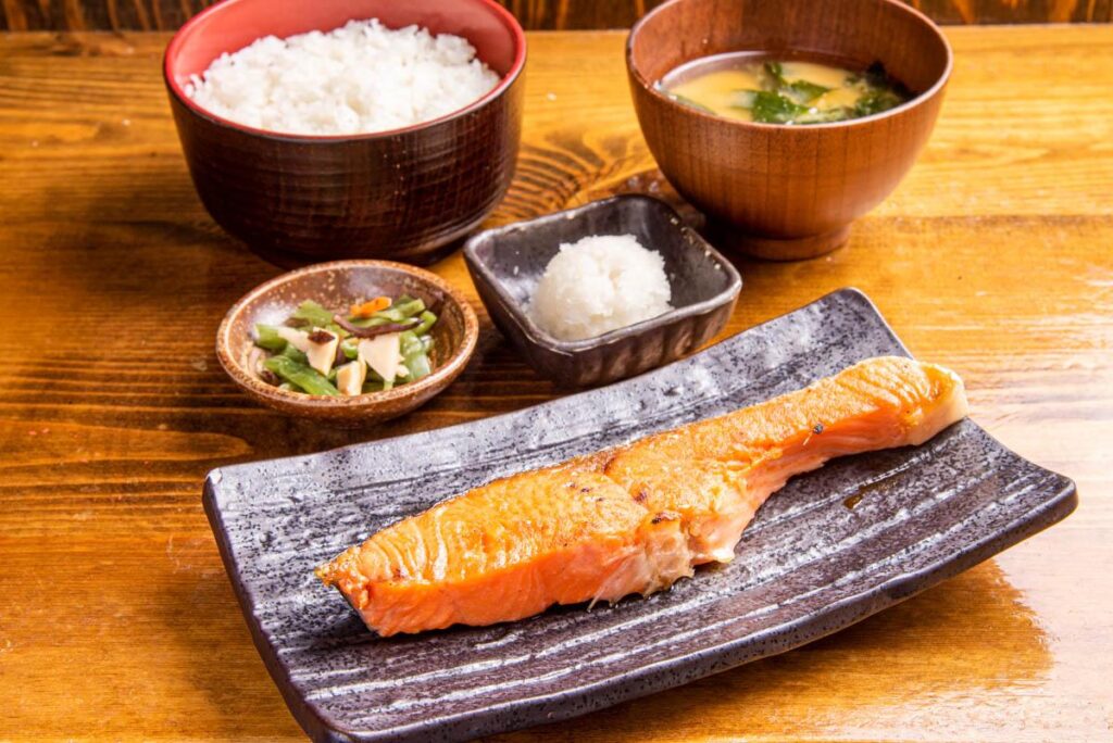 Shinpachi Shokudo’s menu features dishes such as salted grilled silver salmon set (ginzake shioyaki teishoku), simmered mackerel in miso set (saba misoni teishoku), butterflied horse mackerel set (aji hiraki teishoku), and salted grilled Pacific saury set (sanma shioyaki teishoku) — all mainstays of the Japanese home kitchen. The chain also offers meat dishes and breakfast items, including a ginger-glazed chicken set (tori shogayaki teishoku) and a ginger-glazed pork set (buta shogayaki teishoku).