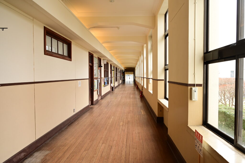And yet it cannot help but seem inferior when placed alongside the Toyosato Jinjo Elementary School building, rebuilt in 1937 — early Showa — with funds provided by Tetsujiro Furukawa.